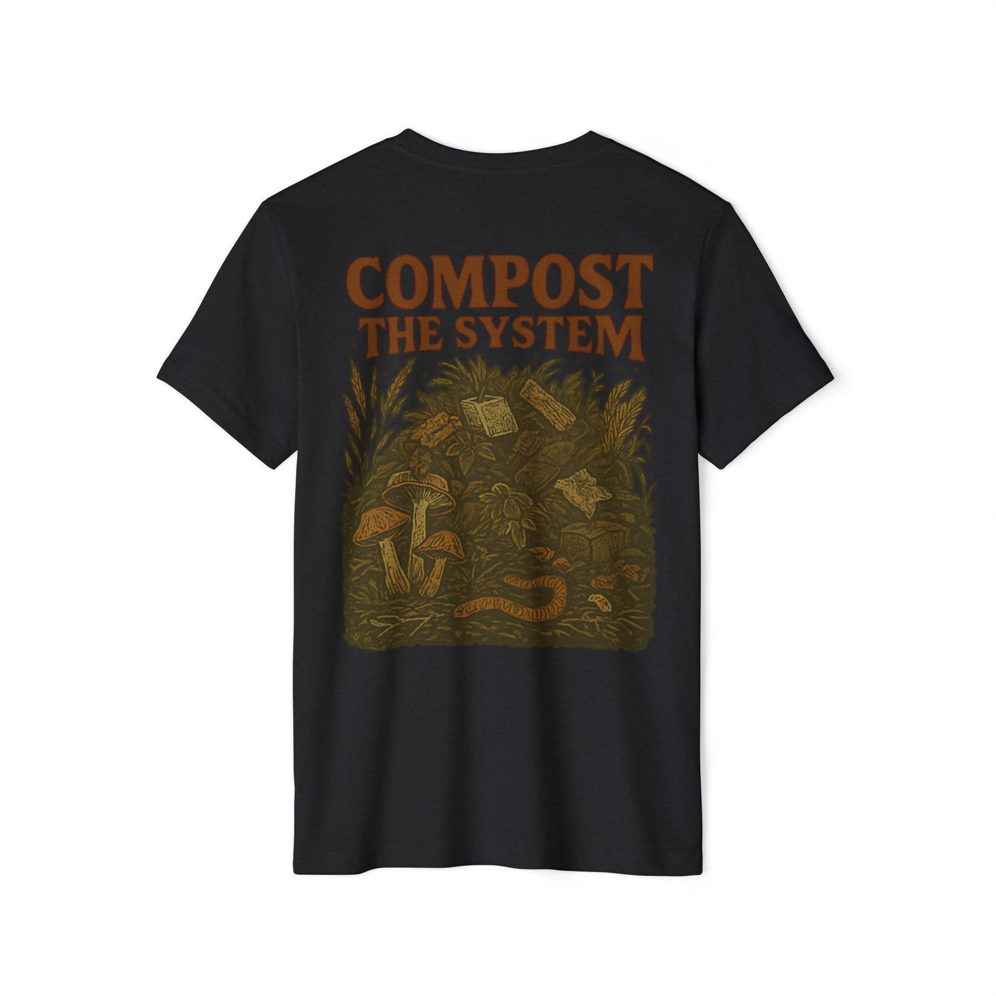 A sustainable and eco-friendly T-Shirt with a bold 'Compost The System' design. Perfect for those who are passionate about environmentalism and activism. Ideal for Earth Day, Climate Action events, and everyday wear for conscious consumers.